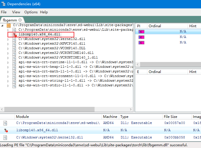 OSError: [WinError 126] 找不到指定的模块。 Error loading "C:\ProgramData\miniconda3\envs\sd-webui\lib\site-packages\torch\lib\fbgemm.dll" or one of its dependencies.